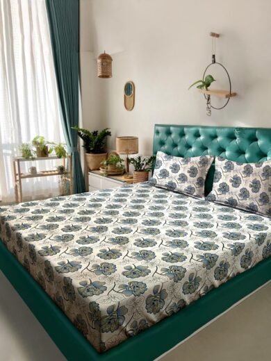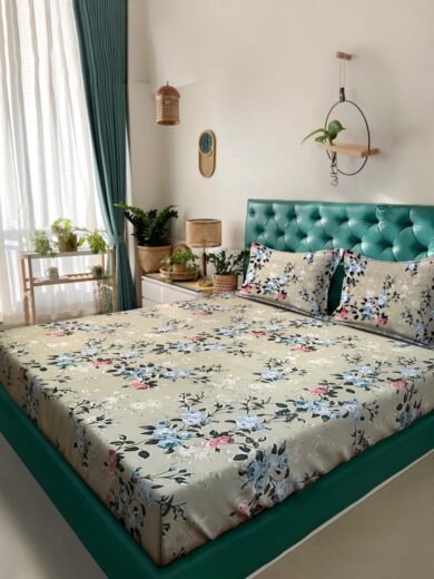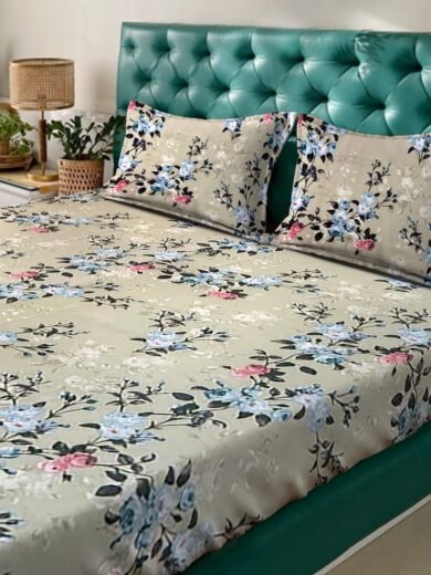 ACKROSS Queen bedsheet, Blossom Royale Collection, Super Soft Microfiber with Premium Fabric, 225 cm x 254 cm (Green)