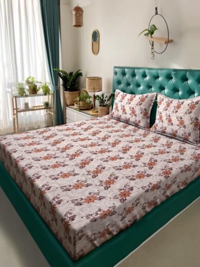 ACKROSS Queen bedsheet, Blossom Royale Collection, Super Soft Microfiber with Premium Fabric, 225 cm x 254 cm (Peach)
