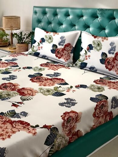 ACKROSS Queen bedsheet, Blossom Royale Collection, Super Soft Microfiber with Premium Fabric, 225 cm x 254 cm (White)
