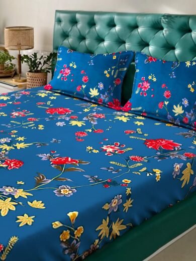 ACKROSS Queen bedsheet, Blossom Royale Collection, Super Soft Microfiber with Premium Fabric, 225 cm x 254 cm (Blue)