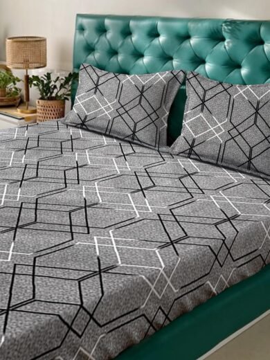 ACKROSS Queen bedsheet, Blossom Royale Collection, Super Soft Microfiber with Premium Fabric, 225 cm x 254 cm (Black)