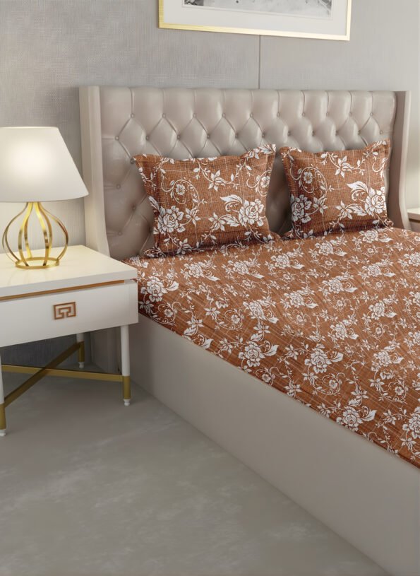 The Ackross Bare Basics Floral Queen Bedsheet is made from 100% cotton with a comfortable 104 TC weave, offering breathable softness for everyday comfort. Sized at 224 × 254 cms, it fits queen beds perfectly and includes matching pillow covers (46 × 69 cms). Easy to maintain and designed for daily living, it brings effortless style and dependable comfort to your bedroom—Ackross, Your Home’s Better Half.