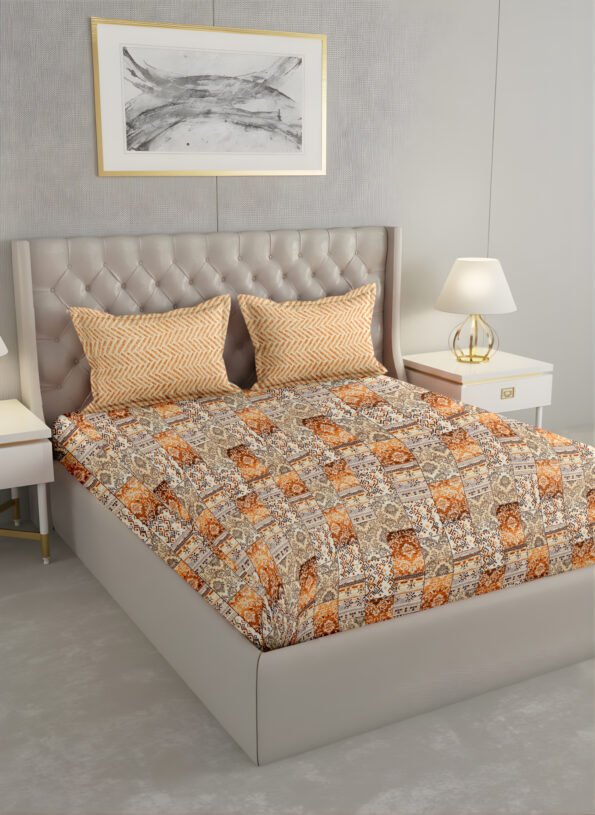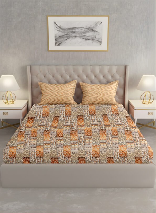 The Ackross Bare Basics Geometric Queen Bedsheet is crafted from 100% cotton with a comfortable 104 TC weave, offering breathable softness for everyday use. Sized at 224 × 254 cms, it provides a smooth fit for queen beds and includes matching pillow covers (46 × 69 cms). Designed for durability, easy care, and modern living, it delivers dependable comfort night after night—Ackross, Your Home’s Better Half.