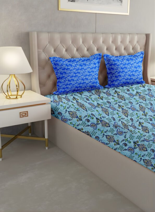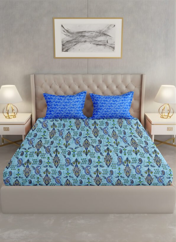The Ackross Bare Basics Floral Queen Bedsheet is made from 100% cotton with a comfortable 104 TC weave, offering breathable softness for everyday comfort. Sized at 224 × 254 cms, it fits queen beds perfectly and includes matching pillow covers (46 × 69 cms). Easy to maintain and designed for daily living, it brings effortless style and dependable comfort to your bedroom—Ackross, Your Home’s Better Half.