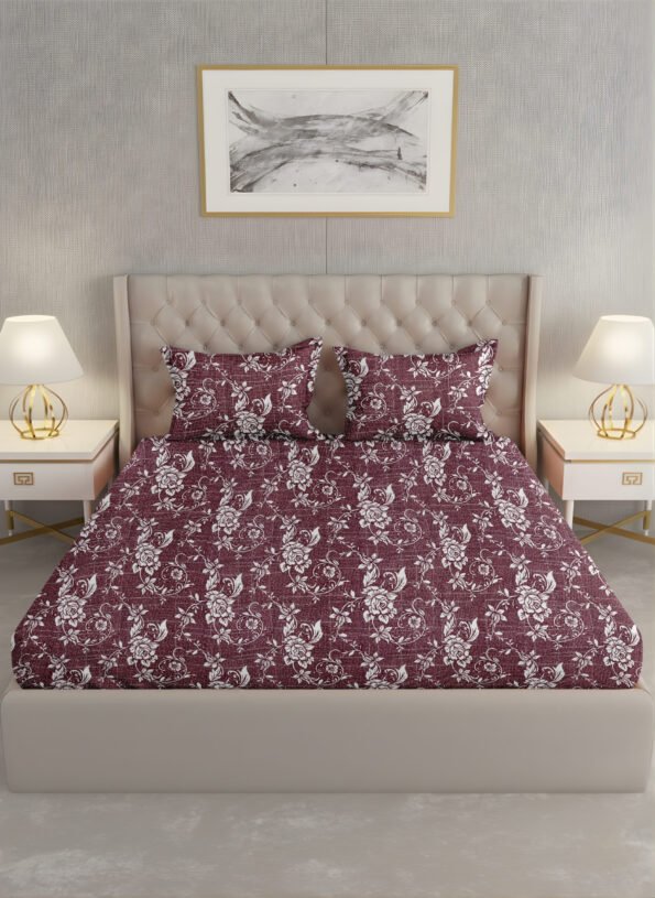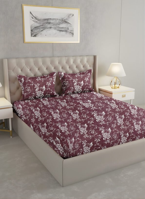 The Ackross Bare Basics Floral Queen Bedsheet is made from 100% cotton with a comfortable 104 TC weave, offering breathable softness for everyday comfort. Sized at 224 × 254 cms, it fits queen beds perfectly and includes matching pillow covers (46 × 69 cms). Easy to maintain and designed for daily living, it brings effortless style and dependable comfort to your bedroom—Ackross, Your Home’s Better Half.