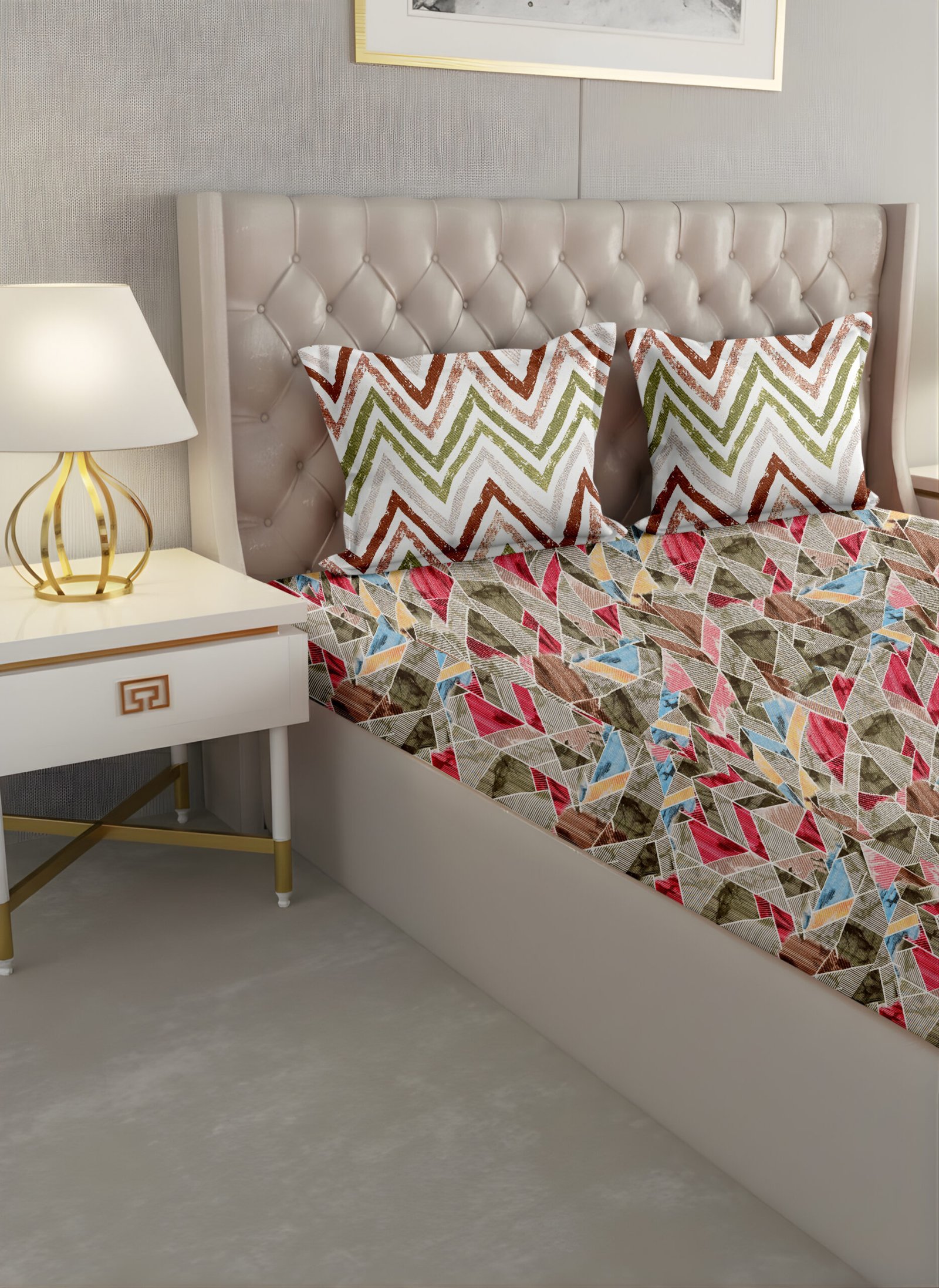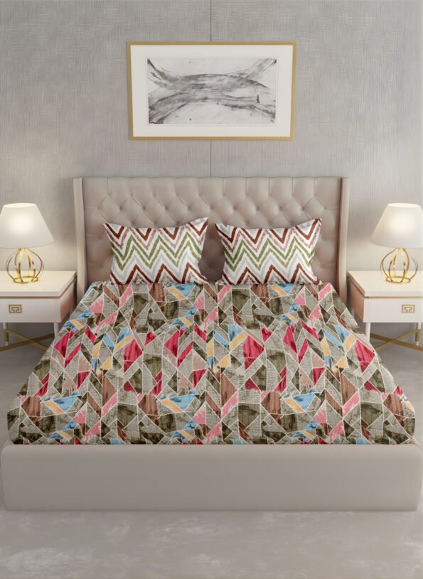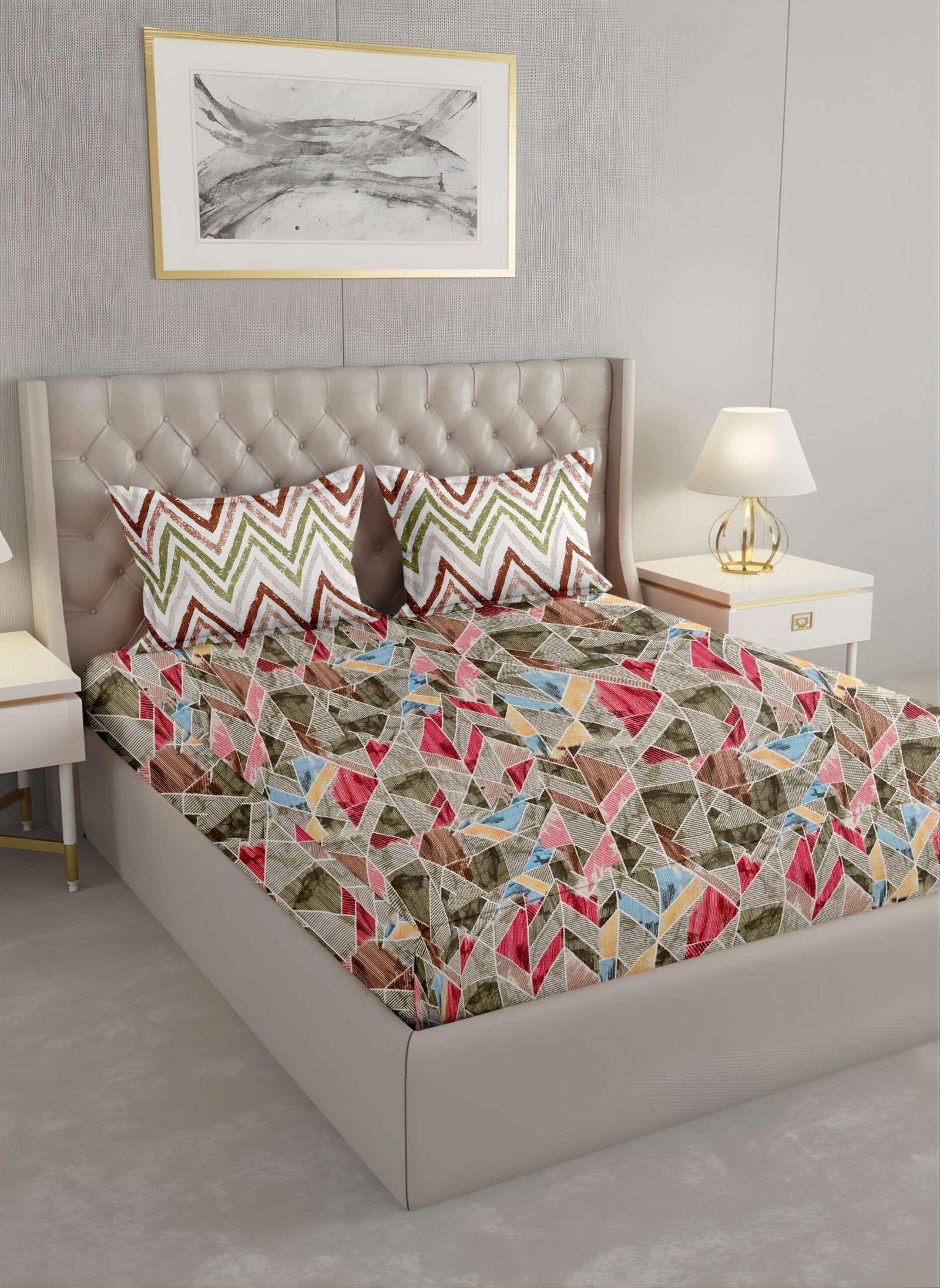The Ackross Bare Basics Geometric Queen Bedsheet is crafted from 100% cotton with a comfortable 104 TC weave, offering breathable softness for everyday use. Sized at 224 × 254 cms, it provides a smooth fit for queen beds and includes matching pillow covers (46 × 69 cms). Designed for durability, easy care, and modern living, it delivers dependable comfort night after night—Ackross, Your Home’s Better Half.