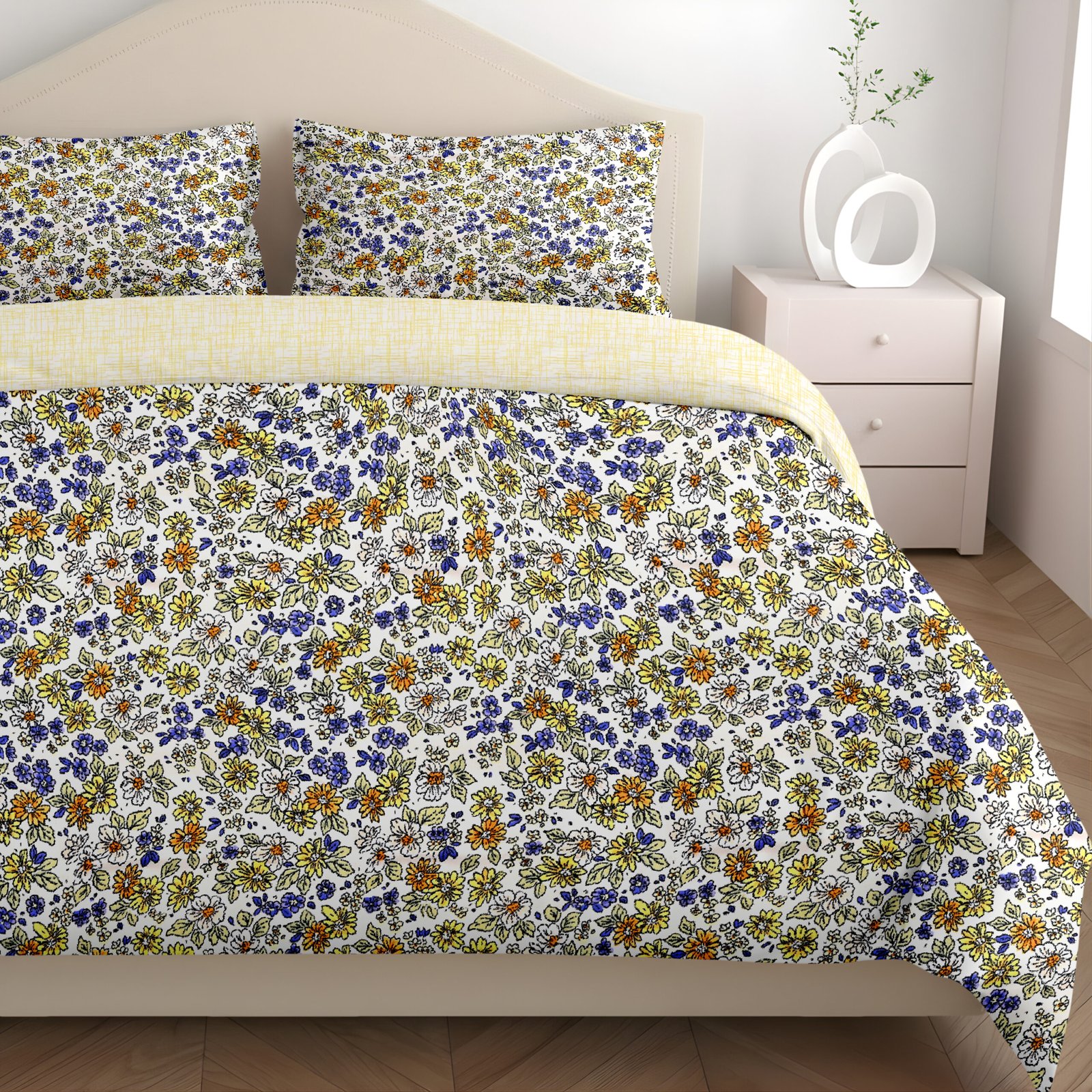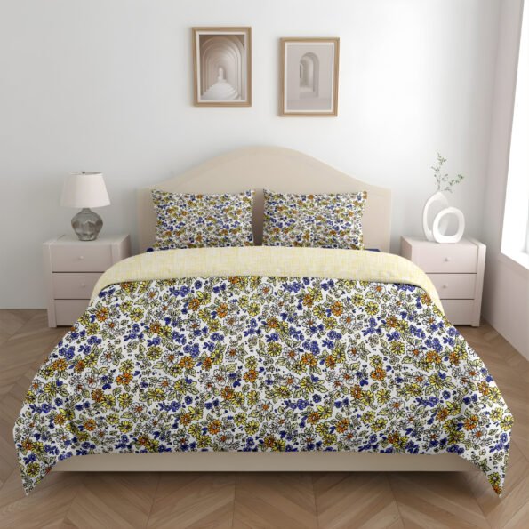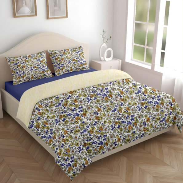 Dual Comfort Floral Yellow Blue Double Bed Dohar