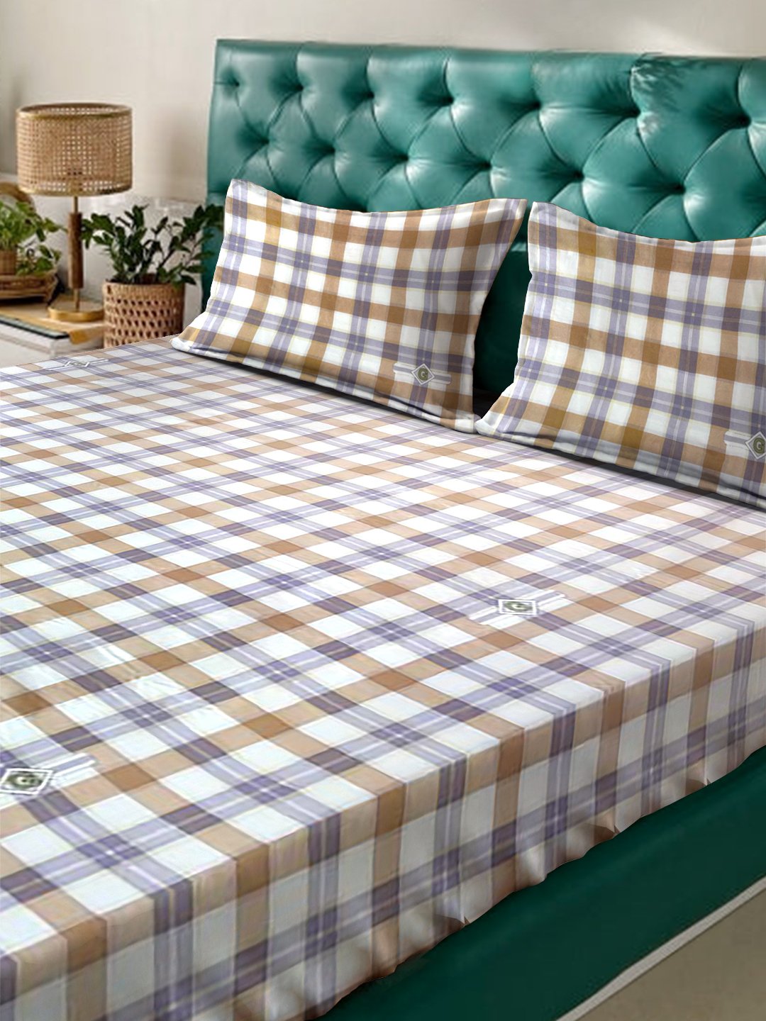 Fusion Collection Check Blue-orange-white- Queen Bedsheets