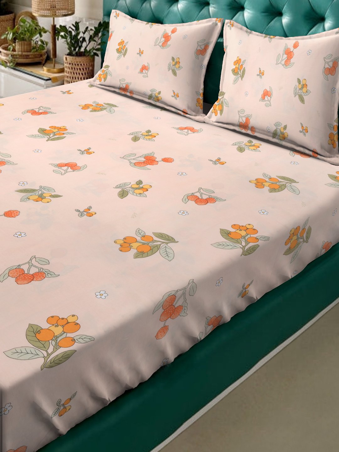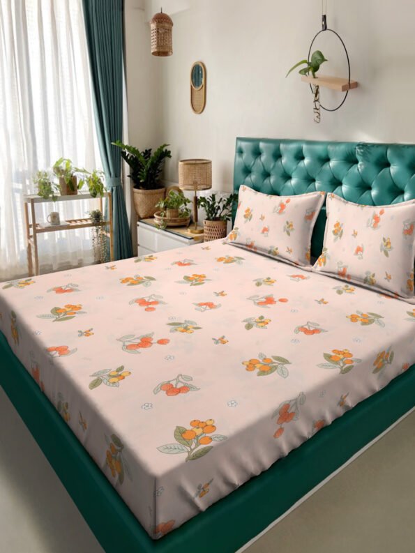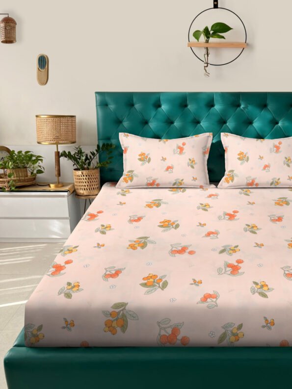 Fusion Collection Floral Dark-Pink-orange Queen Bedsheets
