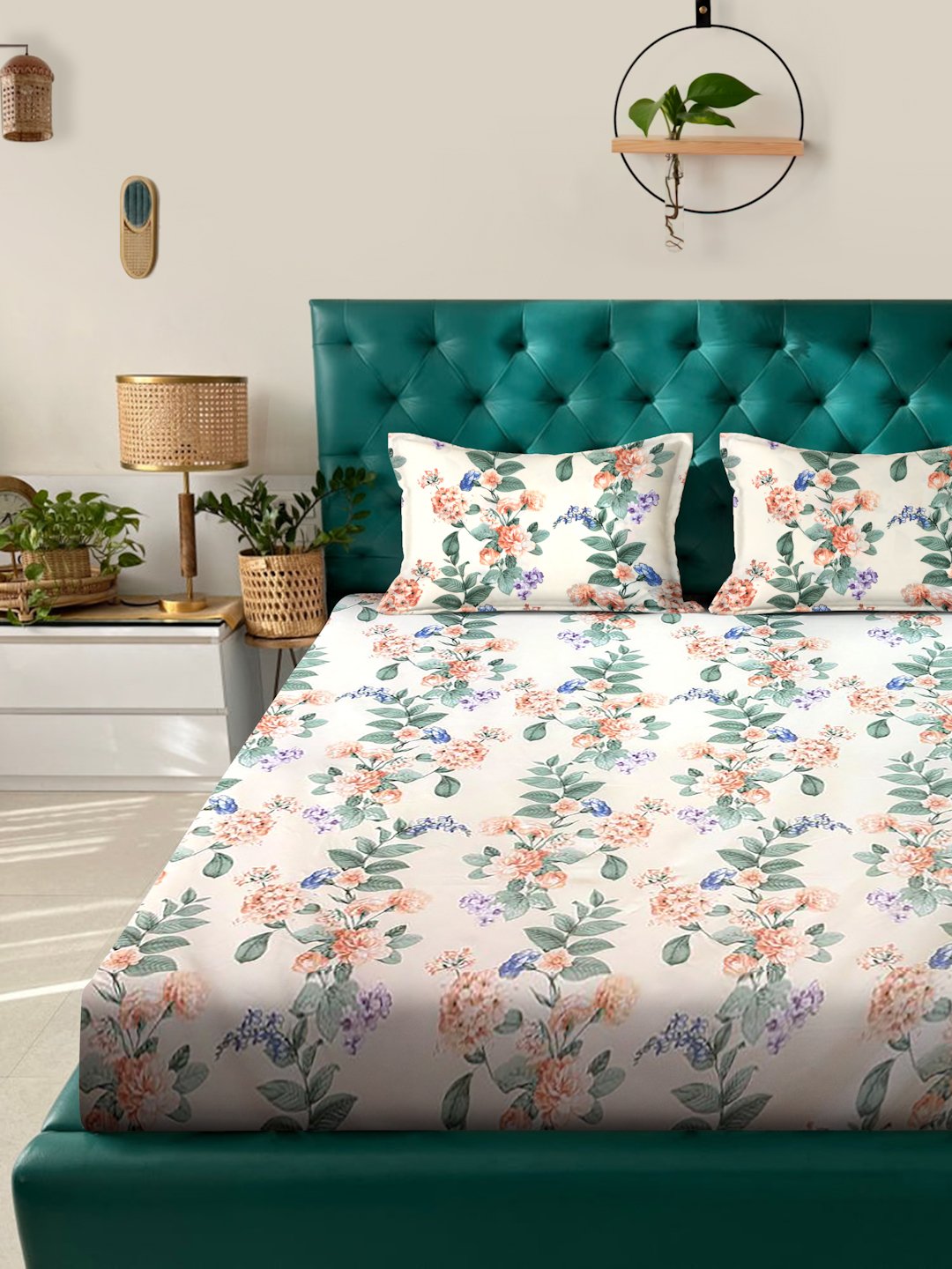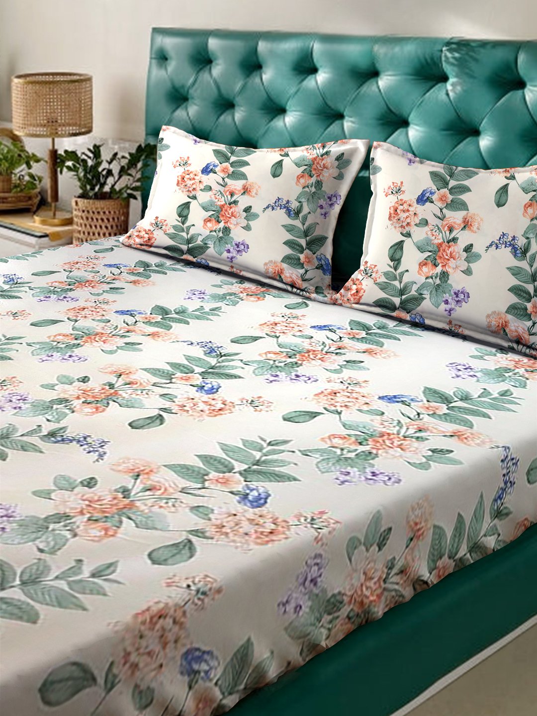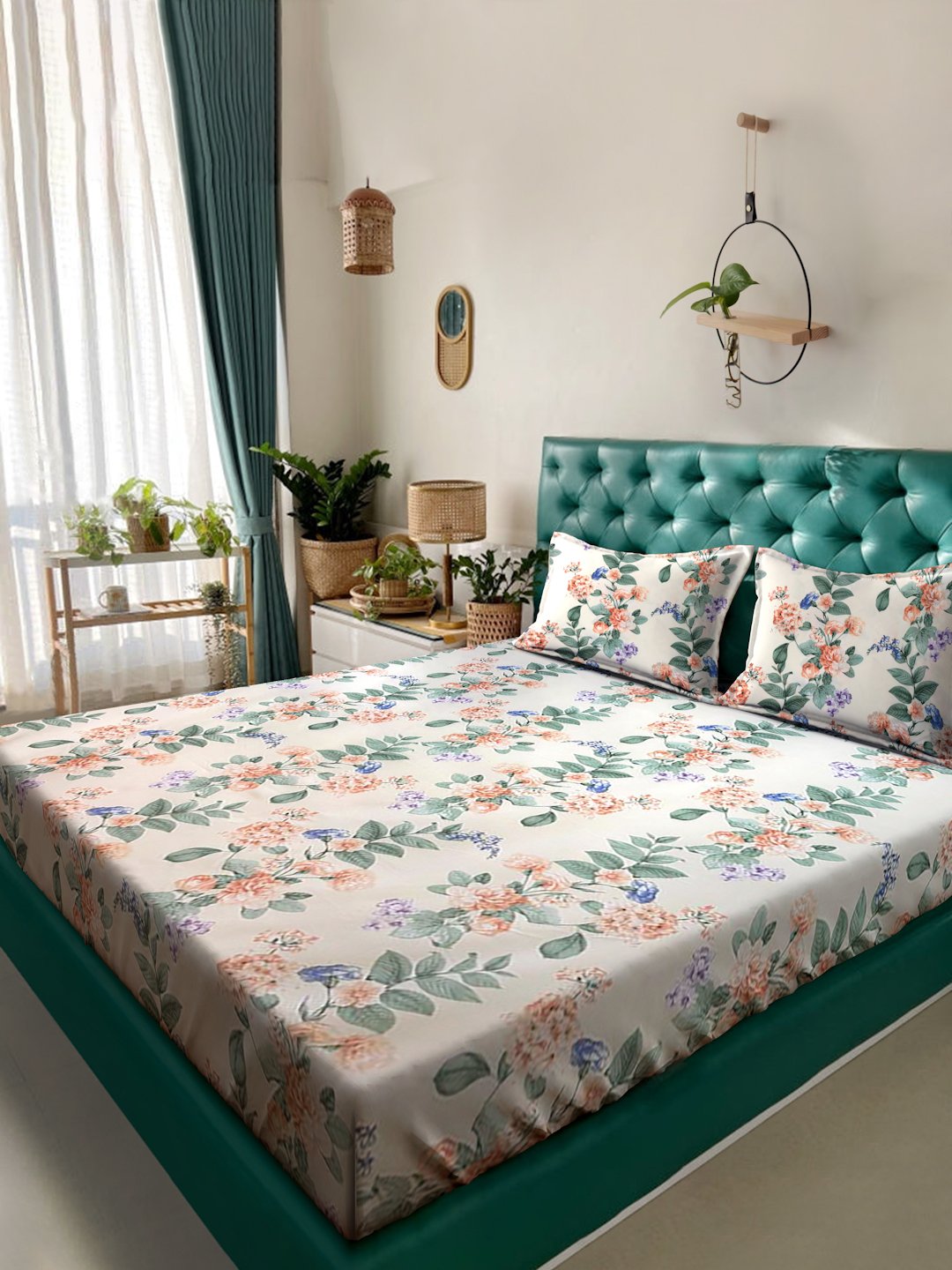 Fusion Collection Floral Light-Pink-green-orange Queen Bedsheets
