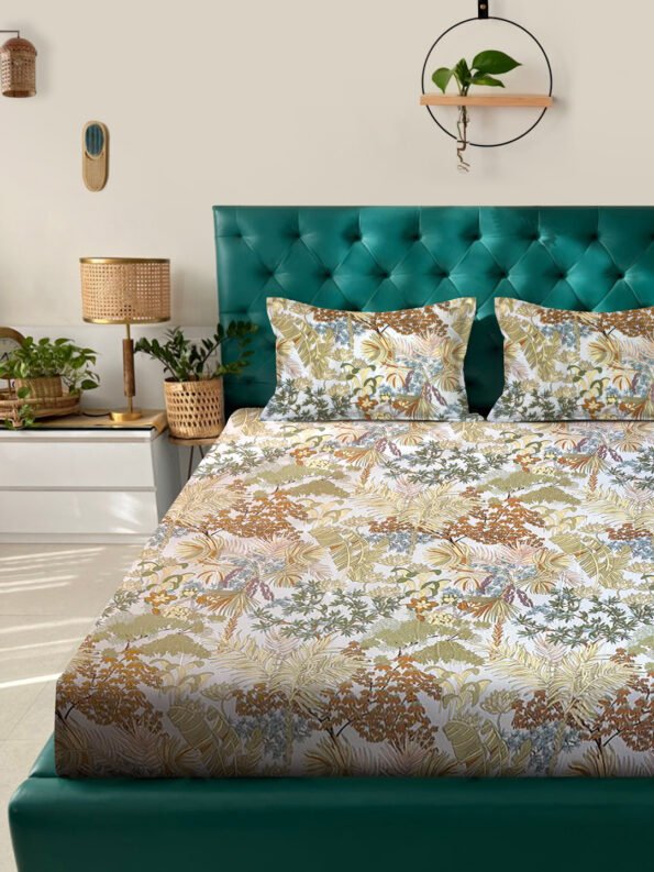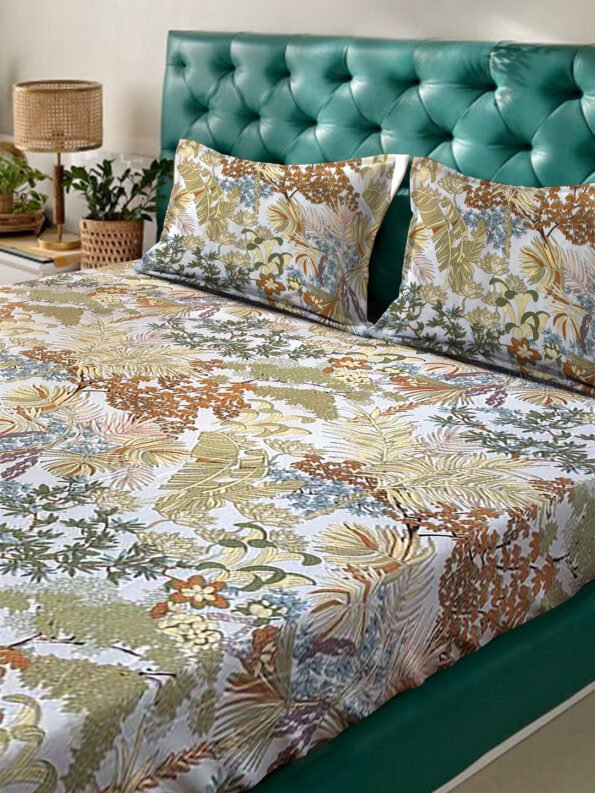 Fusion Collection Floral Olive-Green-white Queen Bedsheets