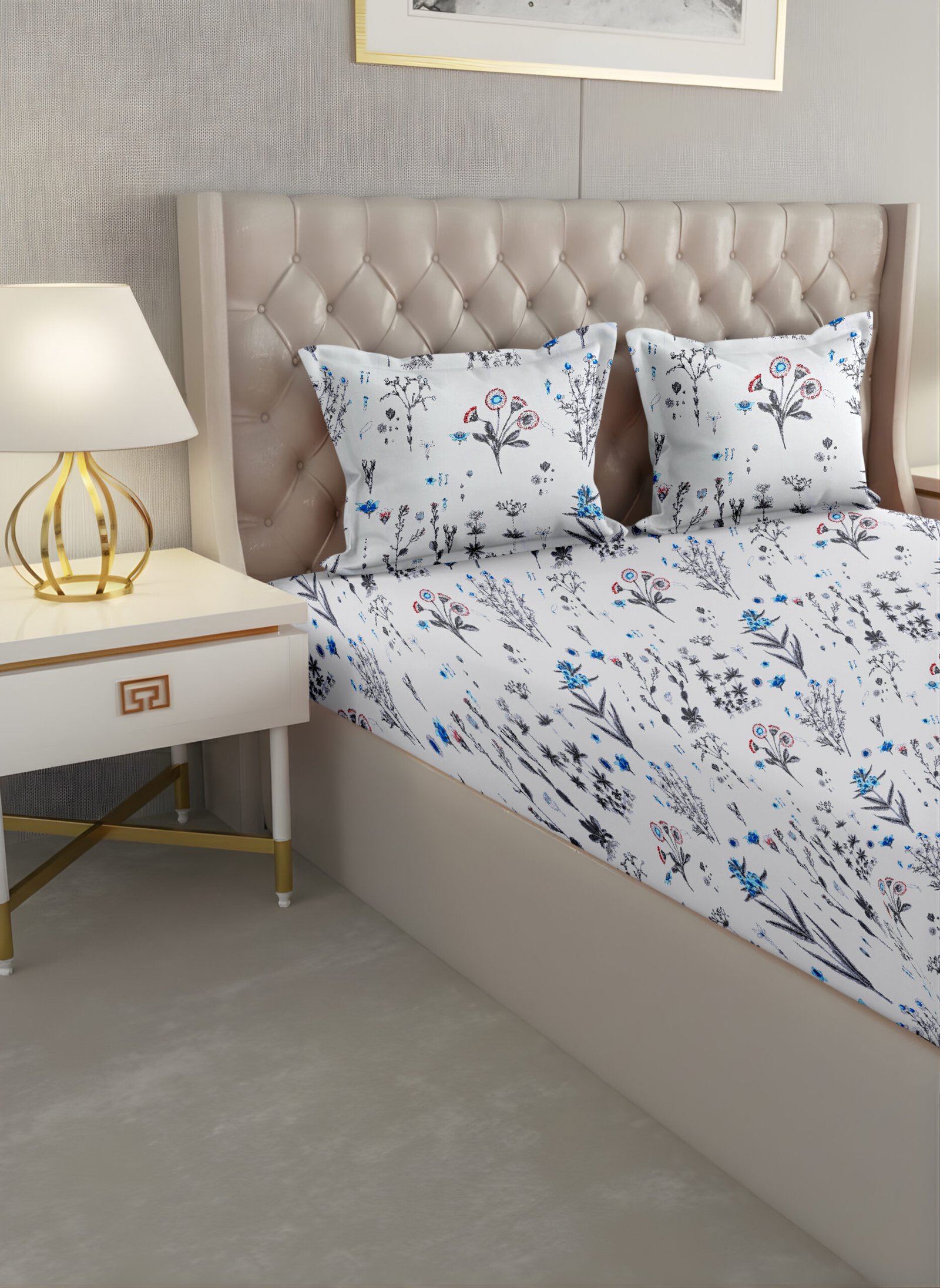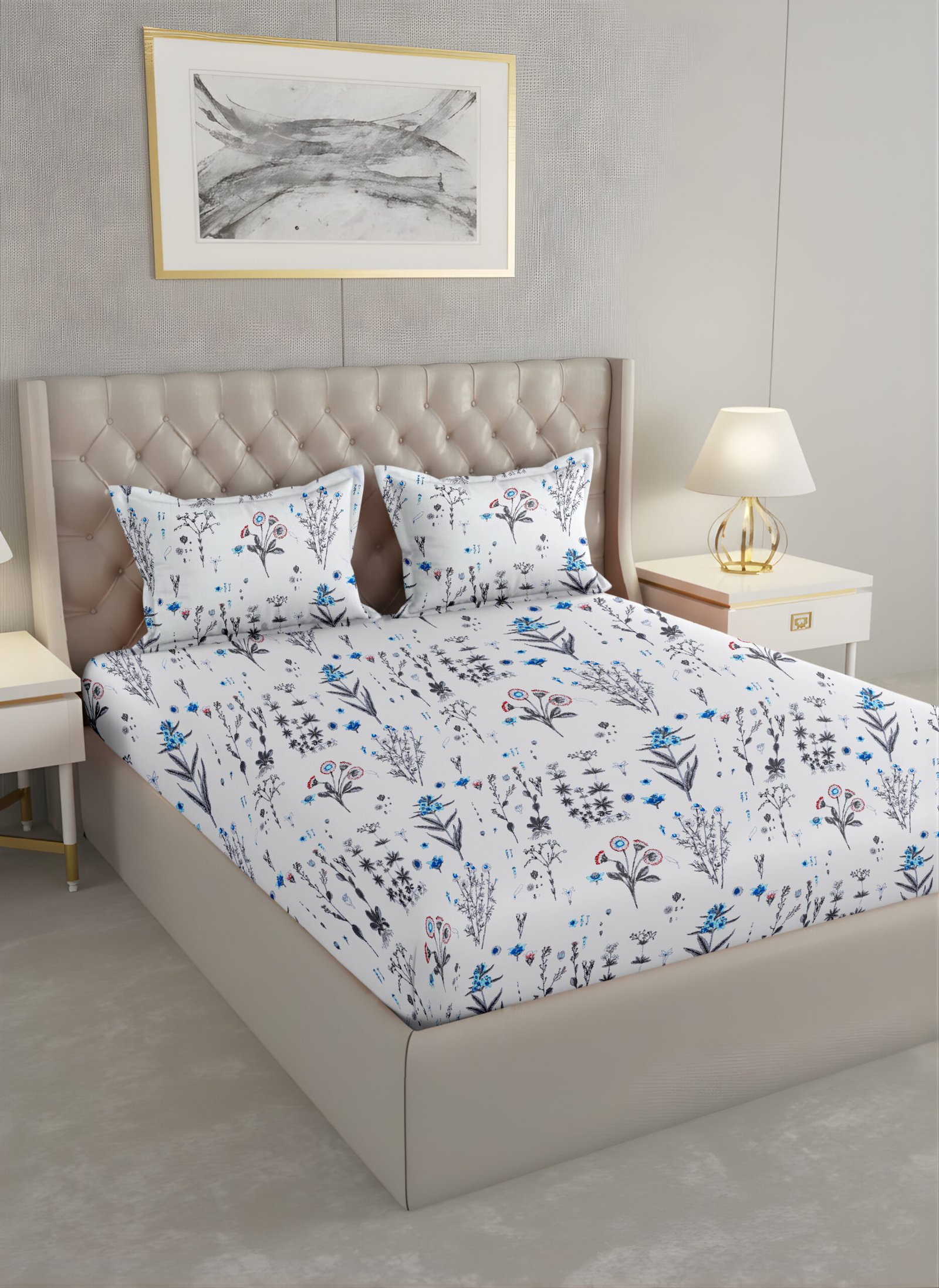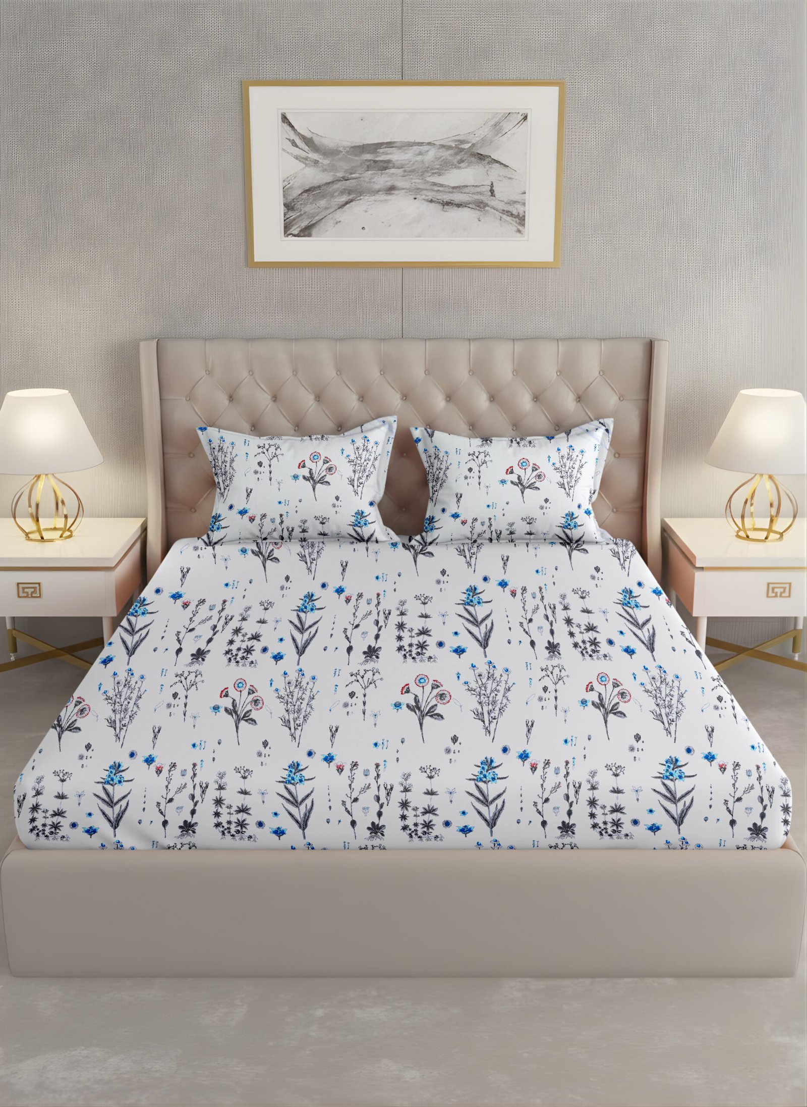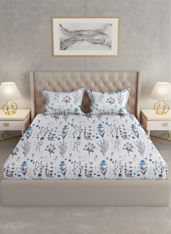 Indulgence King Bedsheet Floral Blue