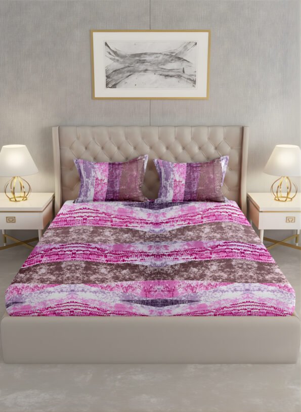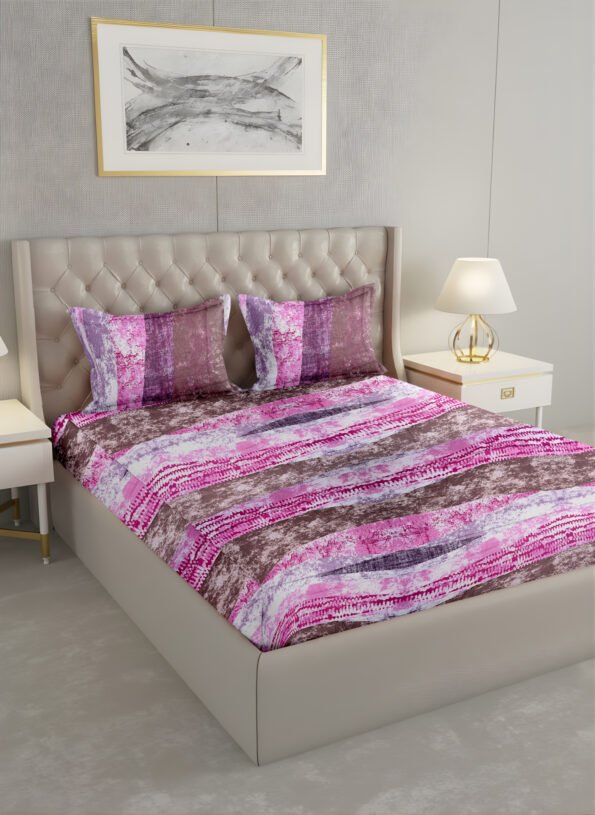 The Ackross Indulgence Geometric King Bedsheet is crafted from 100% cotton with a premium 180 TC weave, offering breathable softness and long-lasting comfort. Sized at 274 × 274 cms, it provides generous coverage for king beds and includes matching pillow covers (46 × 69 cms). Designed with a modern geometric aesthetic and easy-care durability, it delivers everyday luxury—Ackross, Your Home’s Better Half.