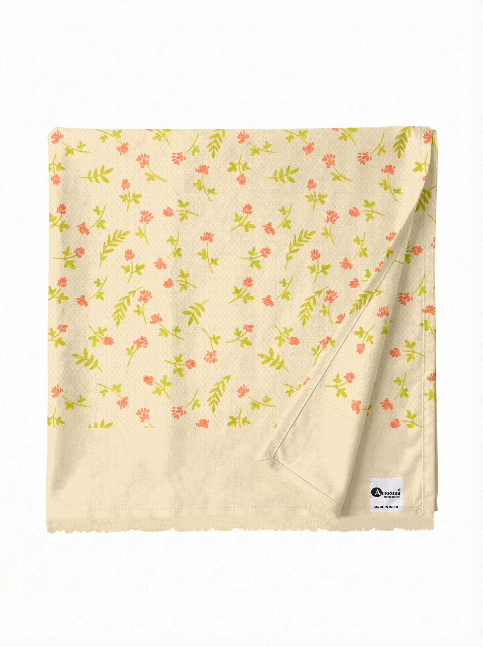 The Ackross Southern Serenity Floral Bath Towel is crafted from 100% cotton, offering softness, absorbency, and durability for everyday use. Sized at 75 × 150 cms, it provides comfortable coverage, while the elegant floral design in assorted Colors adds a warm, inviting touch to your bathroom. Easy to maintain and made for daily comfort, it’s a dependable choice for Indian homes—Ackross, Your Home’s Better Half.